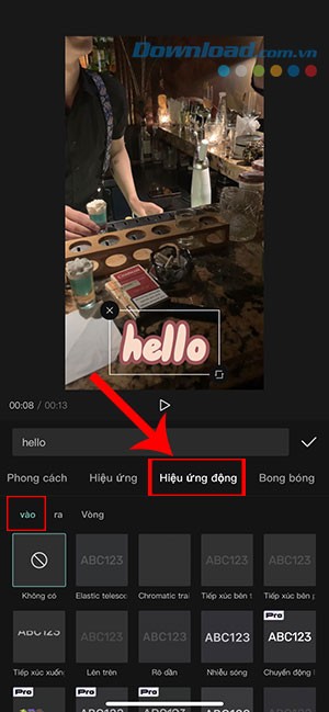 Bước 2: Một danh sách đa dạng các hiệu ứng động sẽ được hiển thị. Hãy khám phá và chọn hiệu ứng phù hợp nhất với phong cách và nội dung video của bạn.