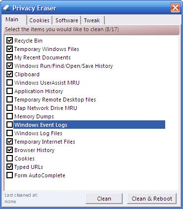 Capture.NET tích hợp một ứng dụng nhỏ giúp bạn xóa các tập tin tạm thời, rác, bộ nhớ cache, cookies và thông tin hệ thống. Công cụ này cũng hỗ trợ cải thiện hiệu suất bằng cách xóa pagefile hoặc tắt máy.