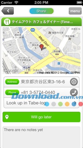 - Tìm lại danh sách các địa điểm phù hợp cho các bữa ăn trong tuần từ My List và thực hiện đặt bàn qua điện thoại (sử dụng thẻ tag khi tạo ghi chú giúp bạn dễ dàng tìm kiếm nội dung sau này. Hỗ trợ gọi điện một chạm).