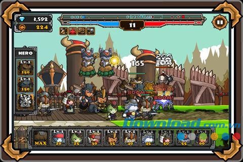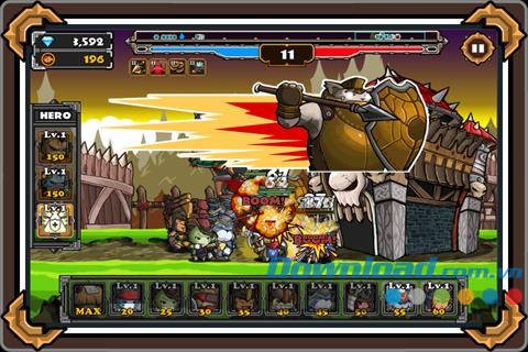 Kim cương là đơn vị tiền tệ chính trong game. Người chơi sẽ nhận được một lượng kim cương nhất định sau mỗi màn chơi để nâng cấp quân đội, anh hùng và mua các vật phẩm hỗ trợ sức mạnh. Game cung cấp một lượng lớn nội dung, với hàng trăm màn chơi và đa dạng các loại đơn vị quân, anh hùng.