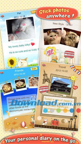 Ứng dụng còn cho phép sử dụng khung ảnh hoặc hình dán ảnh trong các trang nhật ký, giúp bạn tạo ra những thiết kế độc đáo cho các đối tượng đặc biệt được hiển thị trong nội dung.