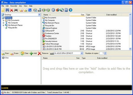 Tại cửa sổ này, bạn có thể chọn các dữ liệu cần ghi lên đĩa bằng cách sử dụng thao tác kéo và thả hoặc thông qua danh sách dữ liệu phía dưới. Ngoài ra, bạn cũng có thể thêm dữ liệu bằng cách nhấp vào nút Add để chỉ định đường dẫn đến các tập tin mong muốn. Sau đó, hãy chọn ổ đĩa ghi và số lượng bản sao cần tạo trong mục Number of copies, rồi nhấn Burn để bắt đầu quá trình ghi đĩa.
