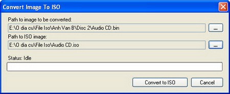 Để thực hiện việc chuyển đổi, bạn hãy nhấp vào nút Convert to ISO. Trong giao diện mới, bạn chỉ cần chỉ định đường dẫn đến file BIN và file ISO sẽ được tạo ra, sau đó nhấn Convert to ISO.