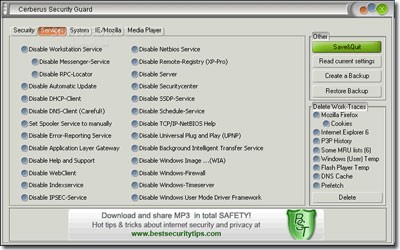 Cerberus Security Guard 3.1.0.0 còn hỗ trợ tối ưu hóa các dịch vụ và ứng dụng quan trọng của hệ điều hành, bao gồm cả các trình duyệt phổ biến như Internet Explorer và Firefox.