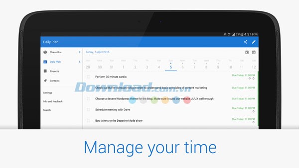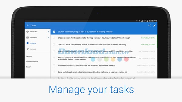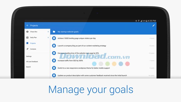 Công cụ này giúp bạn xử lý khối lượng công việc lớn, từ những kế hoạch dài hạn đến những nhiệm vụ hàng ngày như lập danh sách và quản lý mua sắm, tất cả trong một ứng dụng linh hoạt. Chaos Control cũng tương thích với nhiều nền tảng khác như iOS , Windows Phone và máy tính, với khả năng đồng bộ hóa dữ liệu liền mạch.