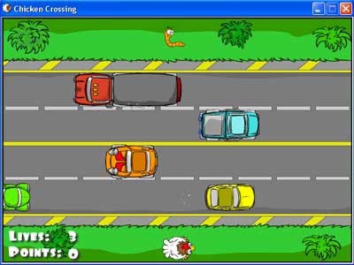 Sử dụng các phím mũi tên trên bàn phím để điều khiển chú gà, tránh xe và ăn sâu.