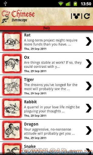 Việc theo dõi tử vi hàng ngày thông qua Chinese Horoscope for Android có thể là một cách thú vị để bạn khám phá bản thân và những điều xung quanh.
