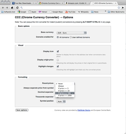 Người dùng có thể dễ dàng thiết lập tỷ giá mong muốn cho các loại tiền tệ khác nhau thông qua bảng điều khiển tùy chọn của Chrome Currency Converter.