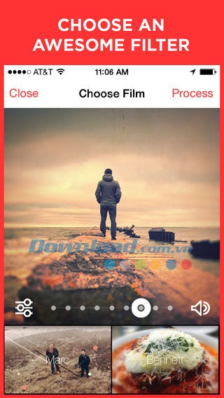 Chọn một bộ lọc bất kỳ và xem trước kết quả ngay lập tức trên màn hình. Sau khi hài lòng, nhấn nút "Process" để ứng dụng áp dụng các thay đổi.