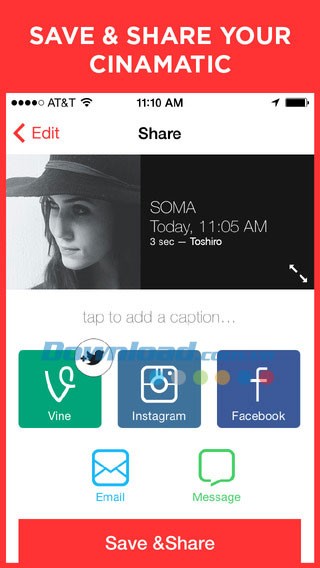 Những video Cinamatic bạn tạo ra có thể được chia sẻ trực tiếp lên các nền tảng video phổ biến như Instagram , Vine hoặc Facebook .