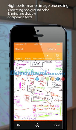 Ứng dụng cung cấp đa dạng các tùy chọn xử lý, phù hợp với nhiều loại tài liệu khác nhau như ảnh, văn bản, bảng trắng, giấy đen trắng và cả ảnh màu.