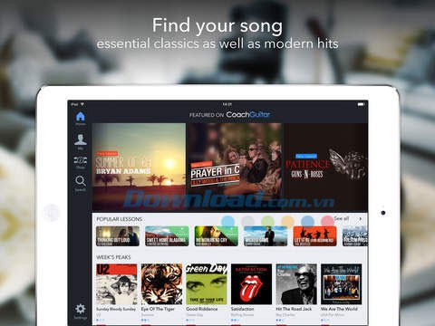 Chỉ cần tải và cài đặt Coach Guitar miễn phí trên iPhone hoặc iPad, bạn đã có thể bắt đầu luyện tập những bản hit guitar nổi tiếng thế giới mọi lúc, mọi nơi. Tự do chọn lựa những bài hát yêu thích và nhanh chóng học chơi để trình diễn trong các buổi giao lưu.