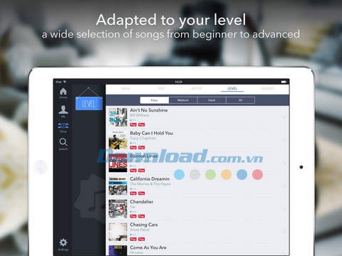- Tìm kiếm và duyệt bài học dễ dàng hơn thông qua các bộ lọc như tên nghệ sĩ, thể loại, độ khó.