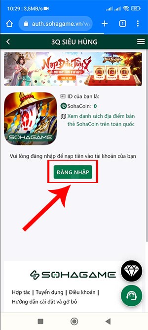 Bước 1: Truy cập đường dẫn https://nap.sohagame.vn/3qsieuhung và đăng nhập vào tài khoản SohaGame của bạn.