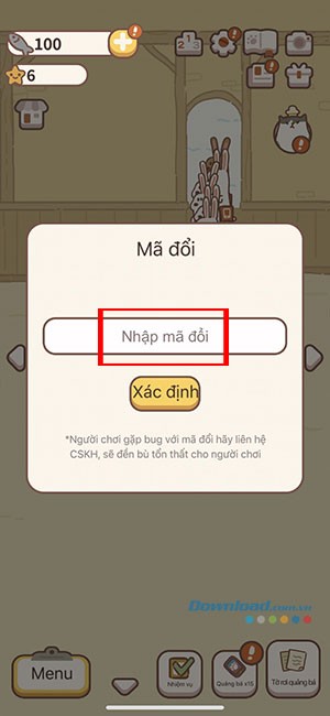 Trong giao diện vừa mở, bạn sẽ thấy một ô trống có dòng chữ Nhập mã đổi. Hãy nhập chính xác mã code bạn có vào ô này.