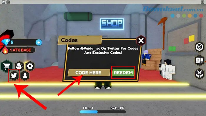 Bước 1: Khởi động Anime Defense Simulator trên nền tảng Roblox. Sau đó, hãy tìm và chọn biểu tượng Twitter (hình chim trắng) nằm ở khu vực phía bên trái màn hình chính.