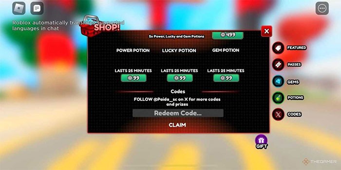 Bước 2: Sau khi đã vào giao diện chính của trò chơi, hãy chọn vào biểu tượng Shop nằm ở phía bên trái màn hình. Tiếp theo, ấn vào nút Codes để mở hộp nhập mã.