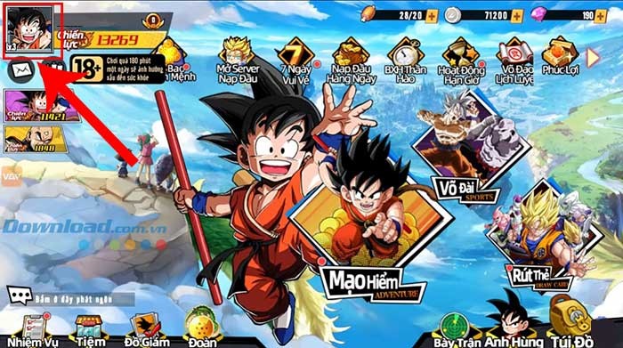 Bước 1: Khởi động Bản Năng Vô Cực 3D trên thiết bị của bạn. Sau đó, hãy chạm vào biểu tượng avatar nhân vật, được đặt ở góc trên cùng bên trái của màn hình giao diện.