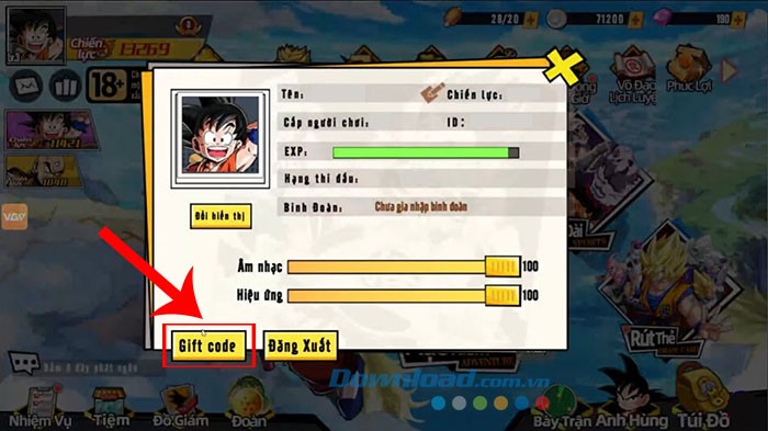 Bước 2: Trong trang hiển thị thông tin cá nhân, lựa chọn mục Giftcode.
