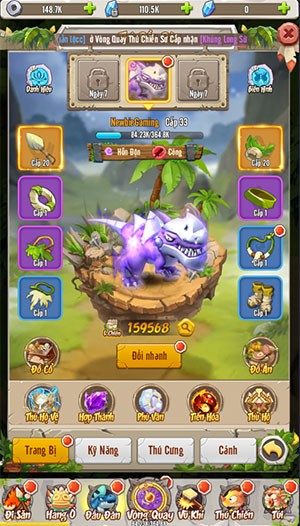 Người chơi có thể trang bị cho Thần Thú những món đồ mạnh nhất, nâng cấp kỹ năng, thú cưng và cánh khi có đủ tài nguyên cần thiết.