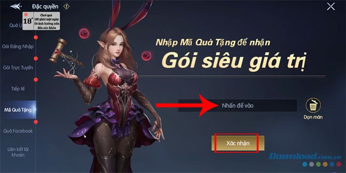 Bước 3: Để sử dụng mã, hãy nhập chính xác mã code đã được cung cấp hoặc sao chép và dán nó vào ô trống tương ứng. Sau khi hoàn tất, nhấn vào nút Xác nhận. Phần thưởng sẽ được gửi đến hòm thư của bạn, hãy kiểm tra để nhận chúng.