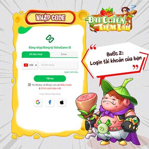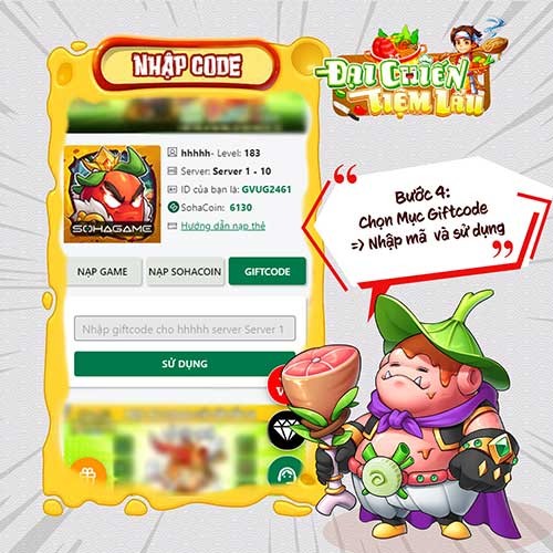 Để nhận các phần quà hấp dẫn trong Đại Chiến Tiệm Lẩu, người chơi cần nhập code thông qua trang web chính thức của SohaGame. Quá trình quy đổi phần thưởng từ code được thực hiện một cách dễ dàng với các bước hướng dẫn chi tiết sau: