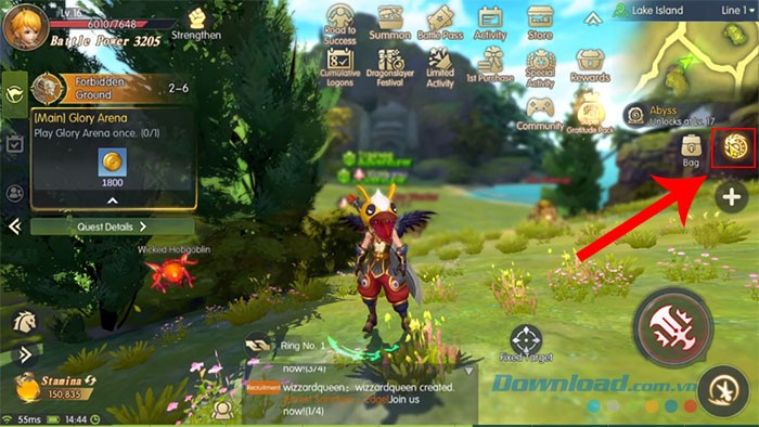 Bước 1: Khởi động ứng dụng Dragon Nest 2: Evolution trên thiết bị của bạn. Tiếp theo, hãy nhấn vào biểu tượng con rồng, được đặt ở phía bên phải màn hình giao diện chính.