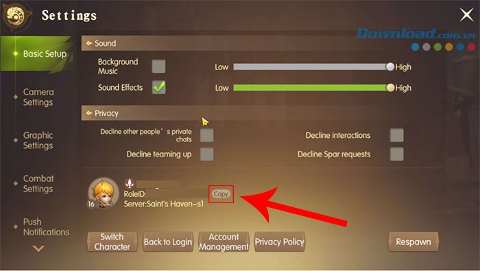 Bước 3: Trong giao diện Basic Setup, bạn sẽ thấy nút Copy nằm cạnh Role ID. Hãy nhấn vào nút này để sao chép Role ID của mình.