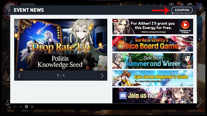 Hướng dẫn nhập mã code trong Epic Seven