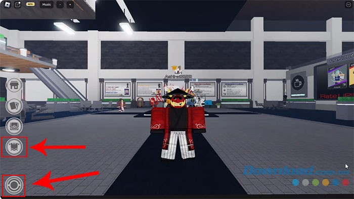Bước 1: Khởi động trò chơi Tower Defense RISE trên nền tảng Roblox. Tiếp theo, hãy tìm và chọn vào biểu tượng tròn được đặt ở góc trái phía dưới màn hình. Sau đó, lựa chọn biểu tượng thứ tư theo thứ tự (như hình minh họa).