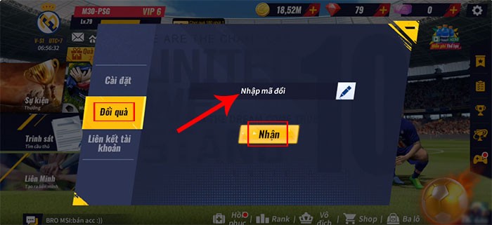 Bước 2: Chuyển sang tab Đổi quà. Tại đây, bạn có thể nhập trực tiếp mã code hoặc sao chép và dán mã code đã cung cấp vào ô trống.