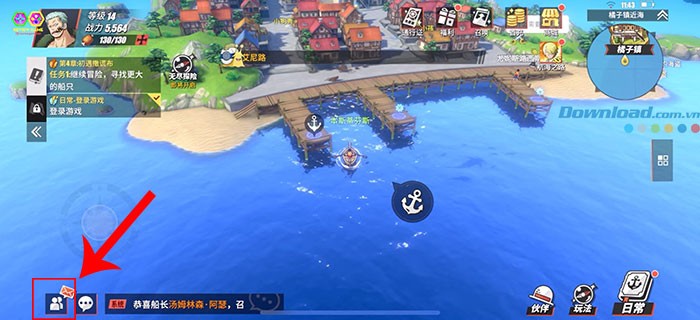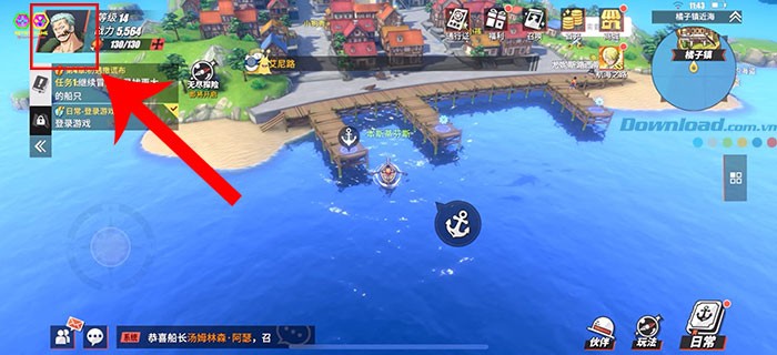 Bước 1: Khởi động One Piece: Fighting Path trên thiết bị của bạn. Tiếp theo, hãy chạm vào hình ảnh đại diện nhân vật của bạn, được đặt ở góc trên cùng bên trái màn hình.