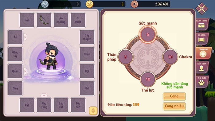 Nâng cấp tiềm năng giúp nhân vật phát triển toàn diện và sở hữu những kỹ năng mạnh mẽ.