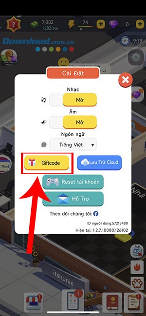 Bước 2: Tiếp theo, chọn vào nút Giftcode.
