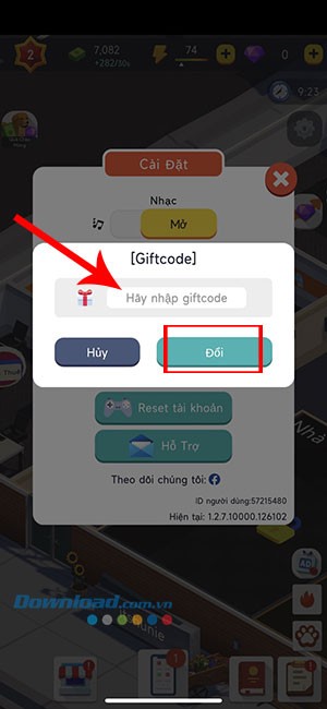 Bước 3: Điền chính xác hoặc sao chép mã code đã được cung cấp vào ô trống có nhãn Hãy nhập giftcode.