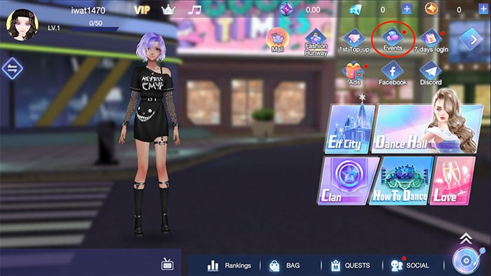 Bước 1: Khởi động trò chơi Idol World: Dance with Idol trên thiết bị của bạn. Sau đó, chạm vào mục Events, được đặt ở góc trên cùng bên phải của màn hình chính.
