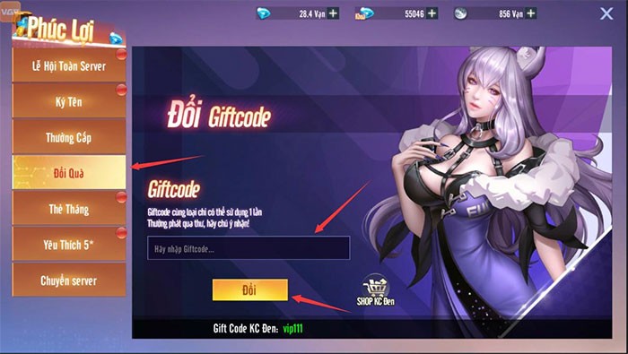 Bước 4: Để hoàn tất quá trình, nhấn vào nút Đổi. Hệ thống sẽ xác nhận việc sử dụng mã code và trao tặng phần thưởng tương ứng cho tài khoản của bạn.