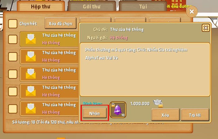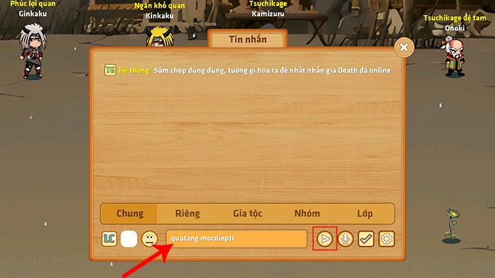 Bước 3: Sau khi nhập, hãy nhấn vào biểu tượng gửi để hoàn tất việc sử dụng mã. Tiếp theo, bạn hãy kiểm tra hòm thư trong game để nhận phần thưởng tương ứng.