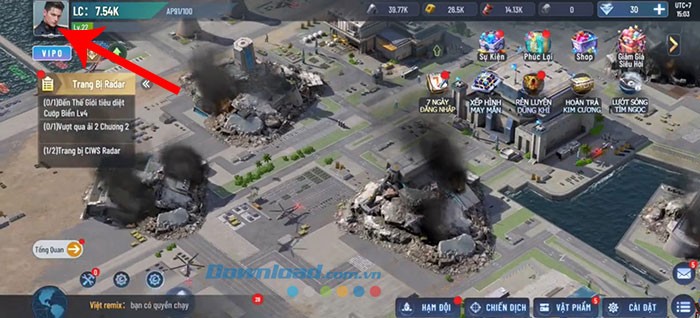 Bước 1: Khởi động ứng dụng Liên Minh Chiến Hạm Tam Cực trên thiết bị của bạn. Sau đó, hãy nhấn vào biểu tượng đại diện nhân vật, thường được đặt ở góc trên cùng bên trái của màn hình chính trong trò chơi.