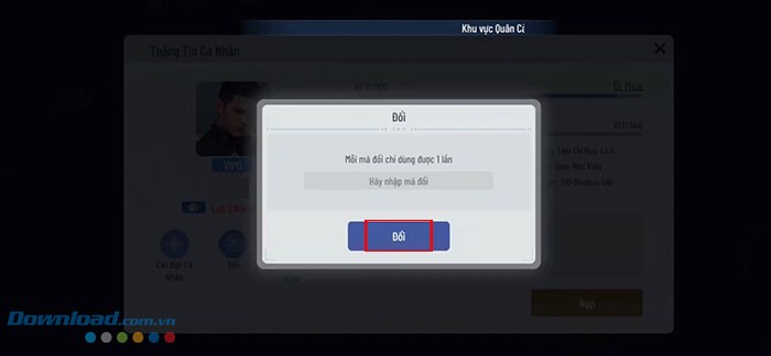 Bước 3: Điền chính xác mã code đã được cung cấp vào ô trống tương ứng. Bạn cũng có thể sao chép và dán mã code để tránh sai sót. Cuối cùng, nhấn nút Đổi để nhận ngay phần thưởng trong trò chơi.