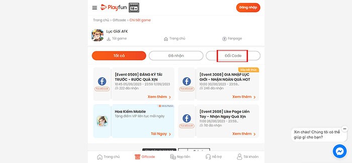 Bước 1: Truy cập đường dẫn trang web https://playfun.vn/giftcode/luc-gioi-afk và đăng nhập vào tài khoản Playfun của bạn.