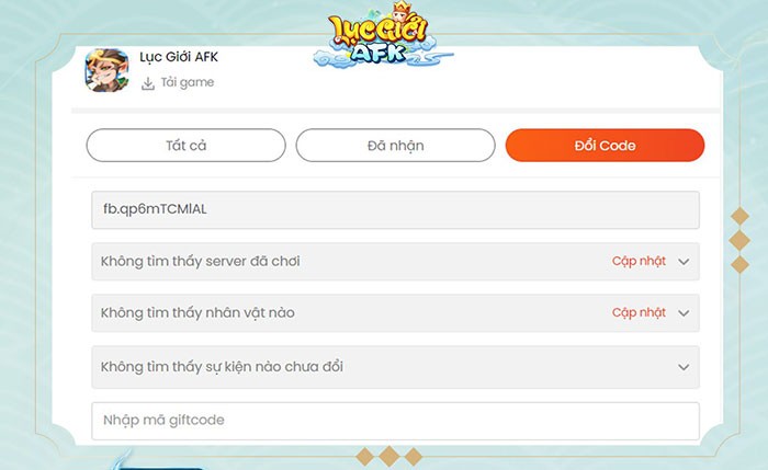 Hướng dẫn Đổi Mã Code Game Lục Giới AFK