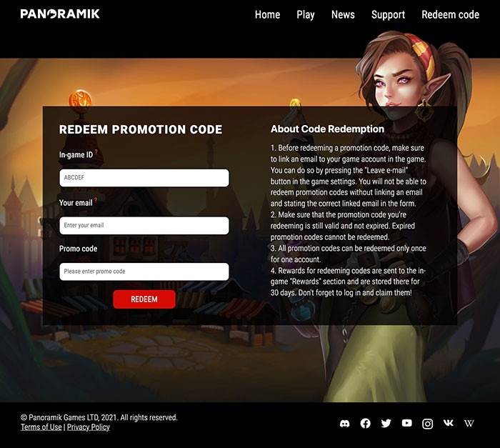 Bước 1: Truy cập trang web đổi mã của Mighty Party theo đường dẫn: https://mighty-party.com/redeem-code .