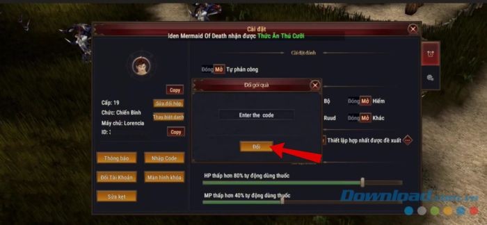 Bước 3: Tiến hành nhập chính xác mã code đã được cung cấp, hoặc bạn có thể sao chép và dán vào ô trống. Cuối cùng, nhấn nút Đổi để nhận ngay những phần thưởng xứng đáng.