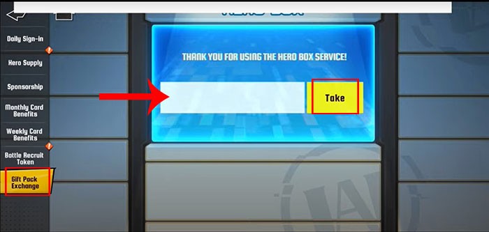 Bước 4: Nhấn vào nút Take để xác nhận việc sử dụng mã và nhận phần thưởng tương ứng một cách nhanh chóng.