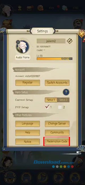 Hướng dẫn nhập mã quà tặng trong Ode To Heroes