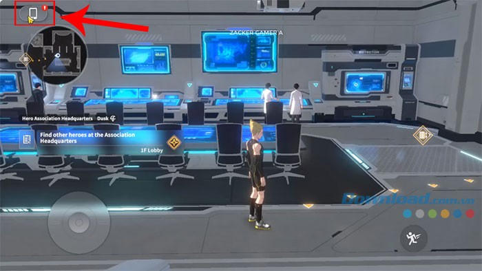 Giai đoạn 1: Khởi động ứng dụng trò chơi One Punch Man: World trên thiết bị của bạn. Sau đó, hãy chạm vào biểu tượng điện thoại được đặt ở góc trên cùng bên trái của màn hình chính.