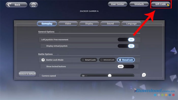 Giai đoạn 3: Tại giao diện mới, hãy tìm và nhấn vào nút Gift Code nằm ở góc trên cùng bên phải màn hình.