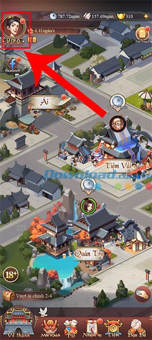 Bước 1: Khởi động Phú Hộ Công Lược trên thiết bị của bạn. Sau đó, hãy chạm vào hình đại diện nhân vật, thường được đặt ở góc trên cùng bên trái màn hình.