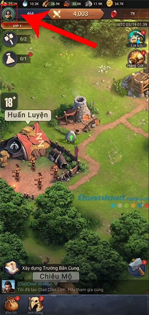 Bước 1: Khởi động ứng dụng Primitive Era Funtap trên thiết bị của bạn. Tiếp theo, hãy chạm vào biểu tượng hồ sơ nhân vật, thường được đặt ở góc trên cùng bên trái màn hình.